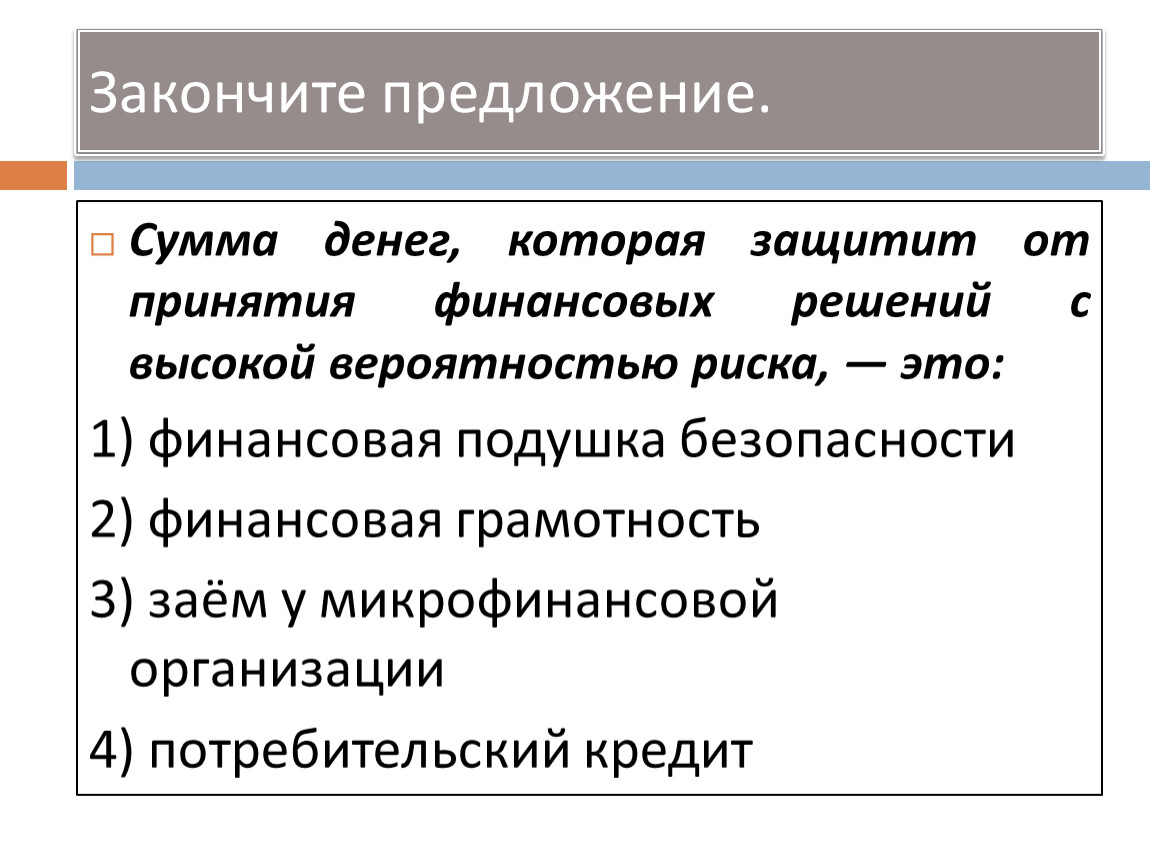 Сумма денег, которая защитит от принятия финансовых решений с высокой вероятностью риска, — это: