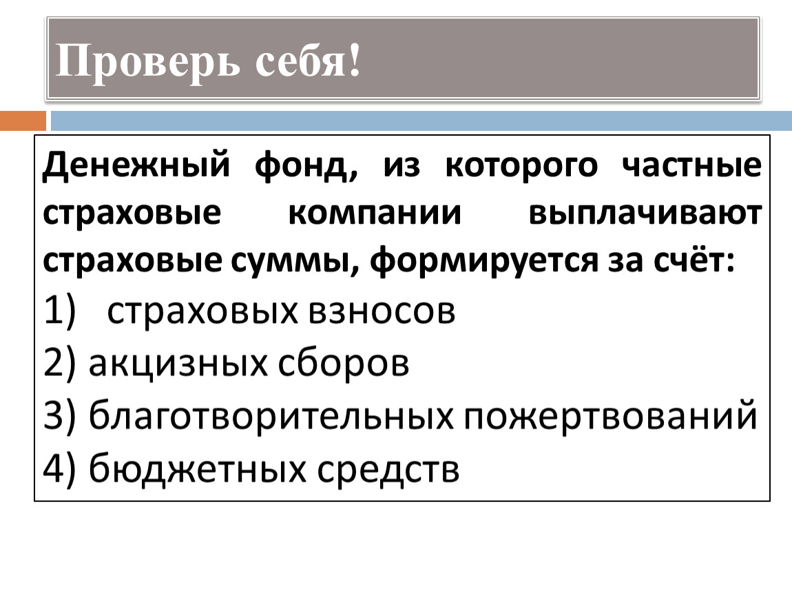 Денежный фонд, из которого частные страховые компании выплачивают страховые суммы, формируется за счёт: