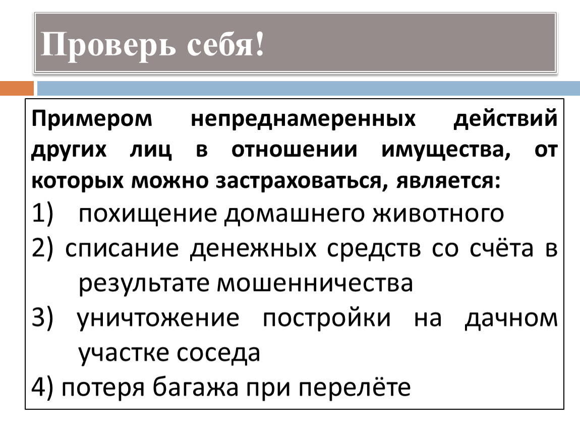 Примером непреднамеренных действий других лиц в отношении имущества, от которых можно застраховаться, является: