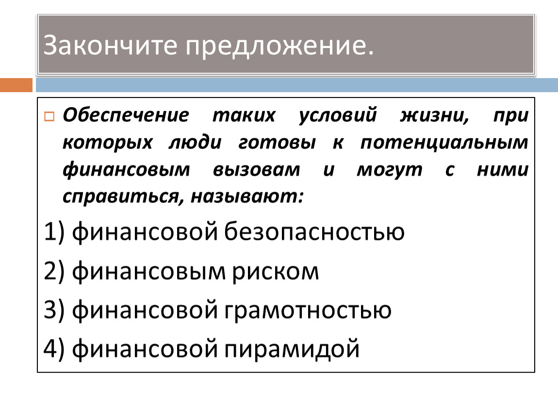 Обеспечение таких условий жизни, при которых люди готовы к потенциальным финансовым вызовам и могут с ними справиться, называют: