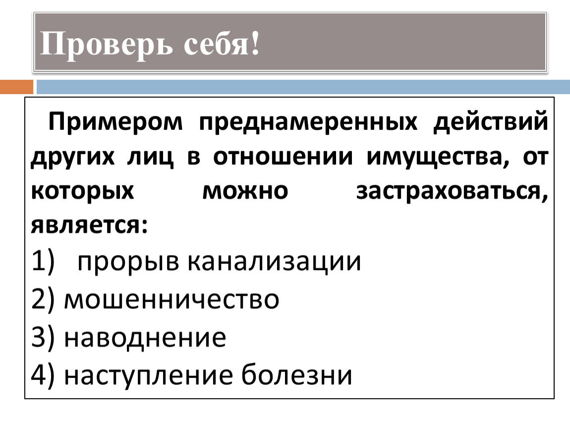 Примером преднамеренных действий других лиц в отношении имущества, от которых можно застраховаться, является: