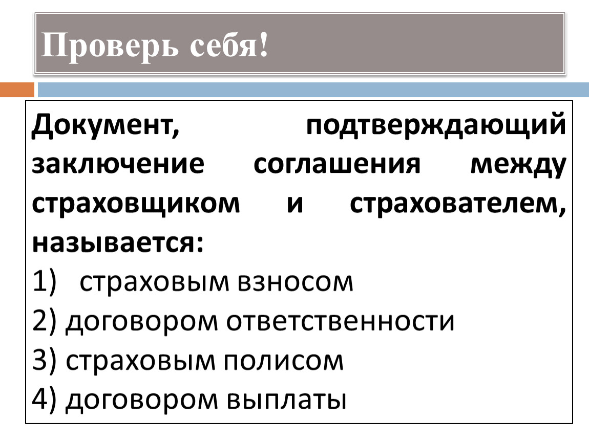 Документ, подтверждающий заключение соглашения между страховщиком и страхователем, называется:
