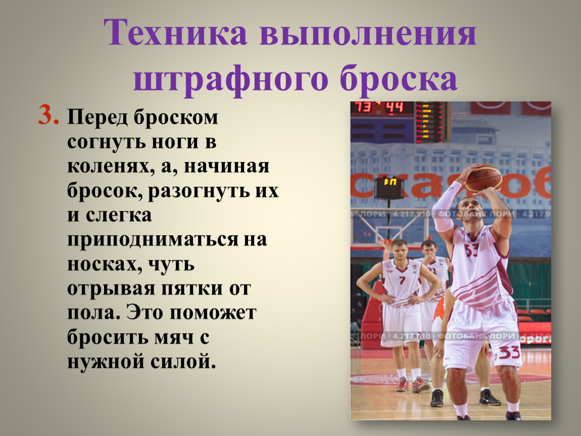 Перед броском согнуть ноги в коленях, а, начиная бросок, разогнуть их и слегка приподниматься на носках, чуть отрывая пятки от пола. Это поможет бросить мяч с нужной силой.