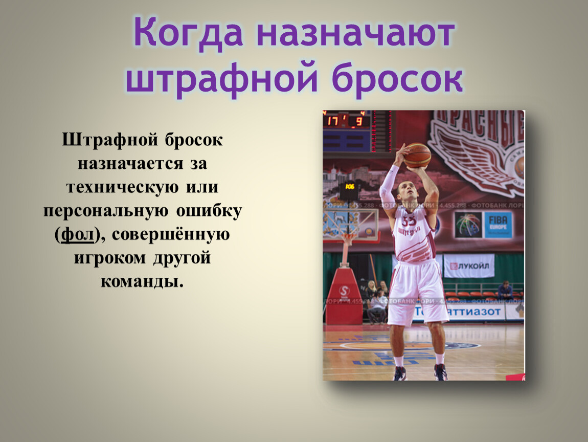 Штрафной бросок назначается за техническую или персональную ошибку (фол), совершённую игроком другой команды.