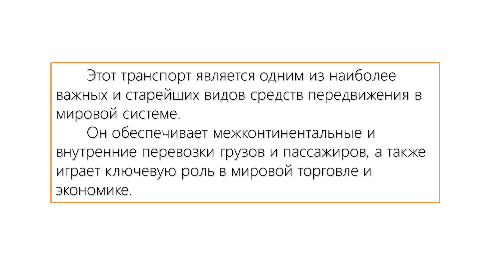 Он обеспечивает межконтинентальные и внутренние перевозки грузов и пассажиров, а также играет ключевую роль в мировой торговле и экономике.