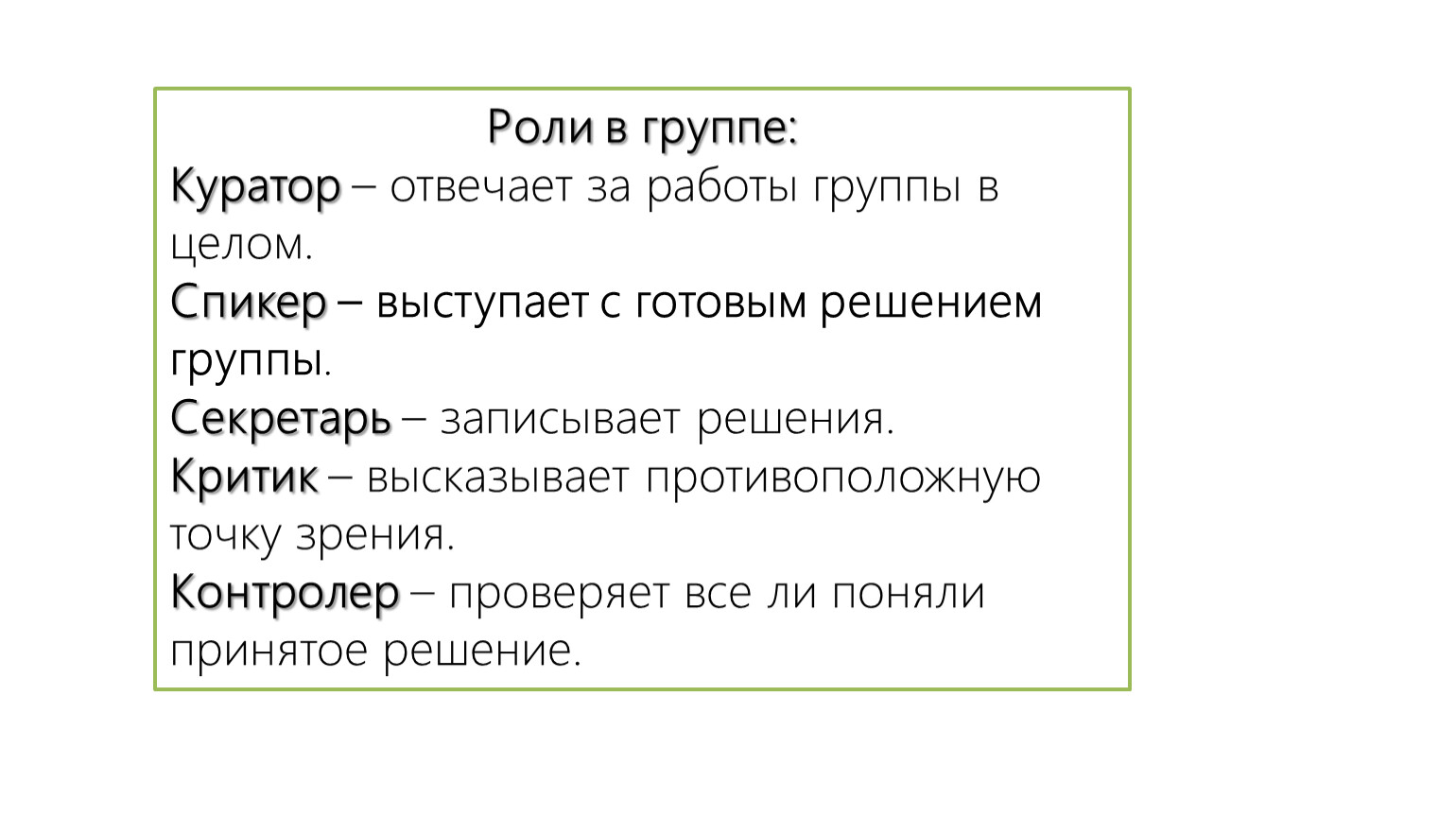 Роли в группе:
