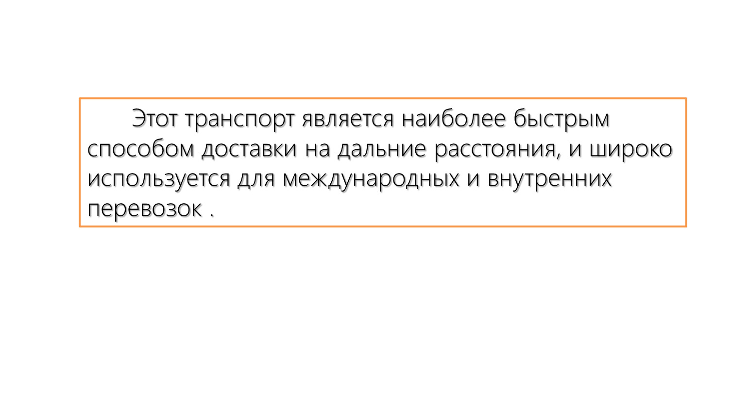 Этот транспорт является наиболее быстрым способом доставки на дальние расстояния, и широко используется для международных и внутренних перевозок .