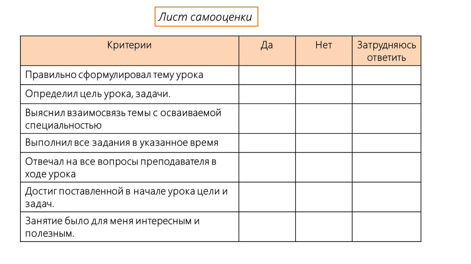 Лист самооценки