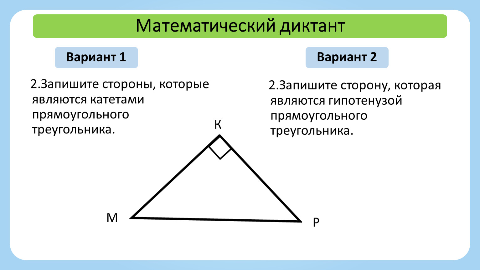 2.Запишите стороны, которые являются катетами прямоугольного треугольника.
