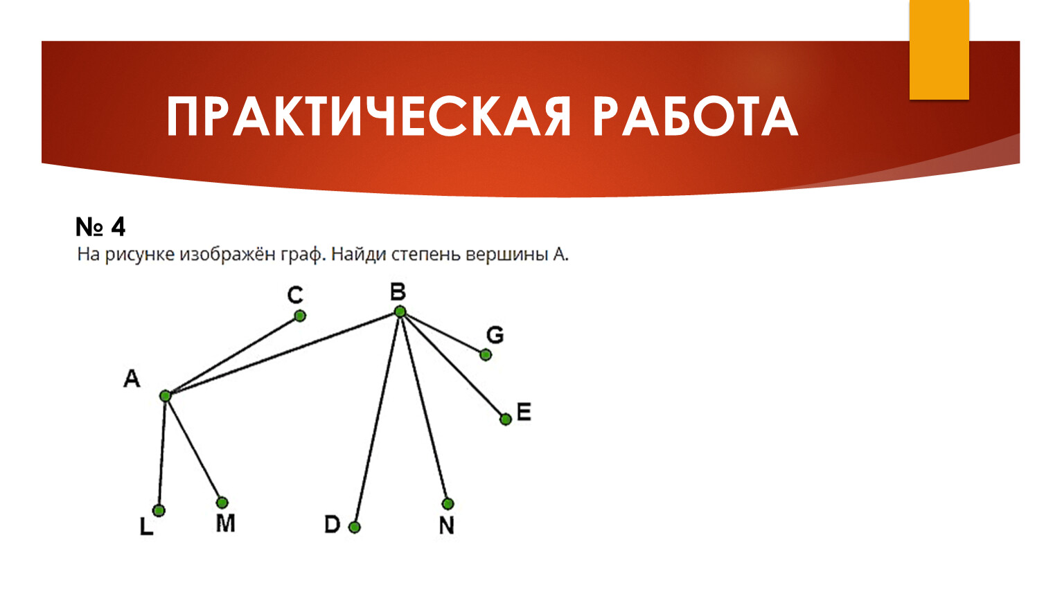 Степенью (или порядком) вершины называется количество рёбер, которые выходят из этой вершины.
