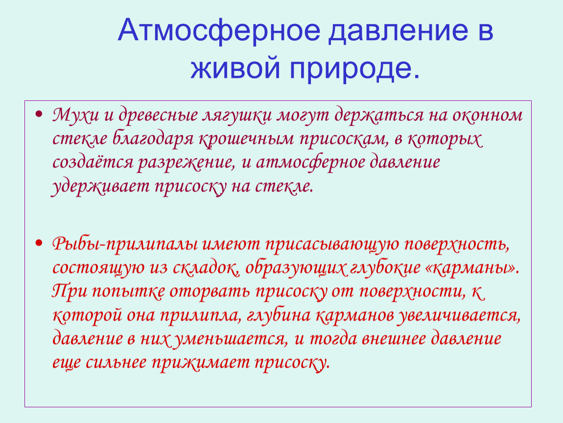 Атмосферное давление в живой природе.