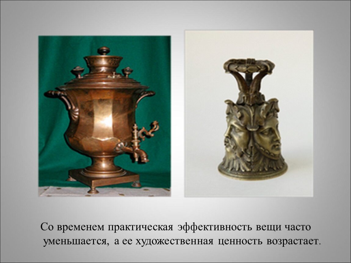 Со временем практическая эффективность вещи часто уменьшается, а ее художественная ценность возрастает.