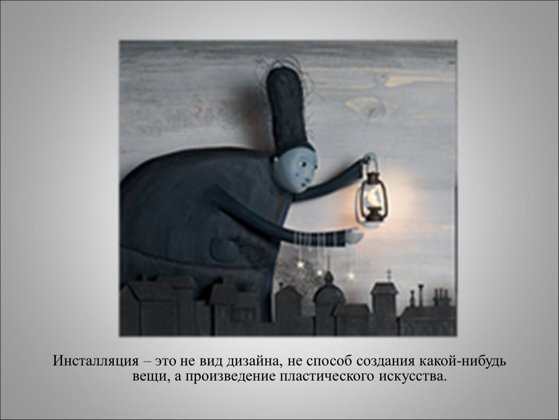 Инсталляция – это не вид дизайна, не способ создания какой-нибудь вещи, а произведение пластического искусства.
