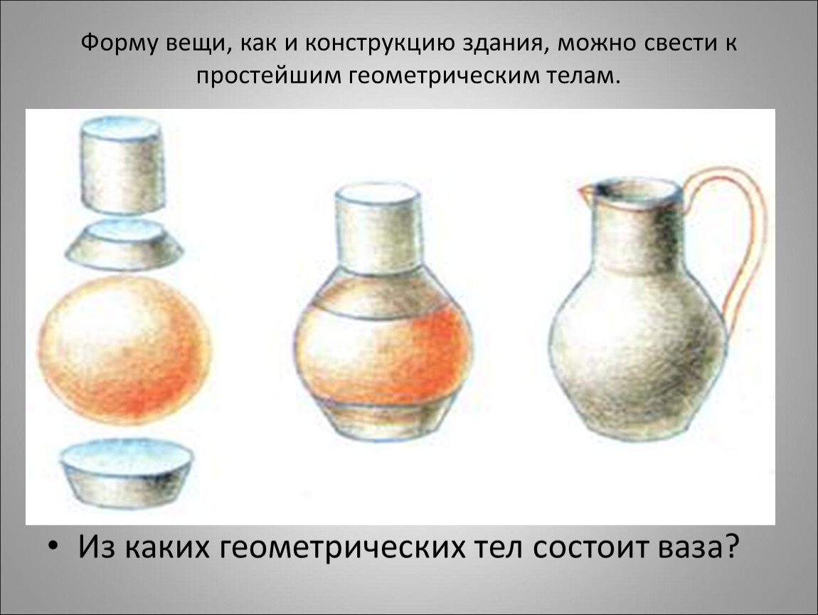 Форму вещи, как и конструкцию здания, можно свести к простейшим геометрическим телам.