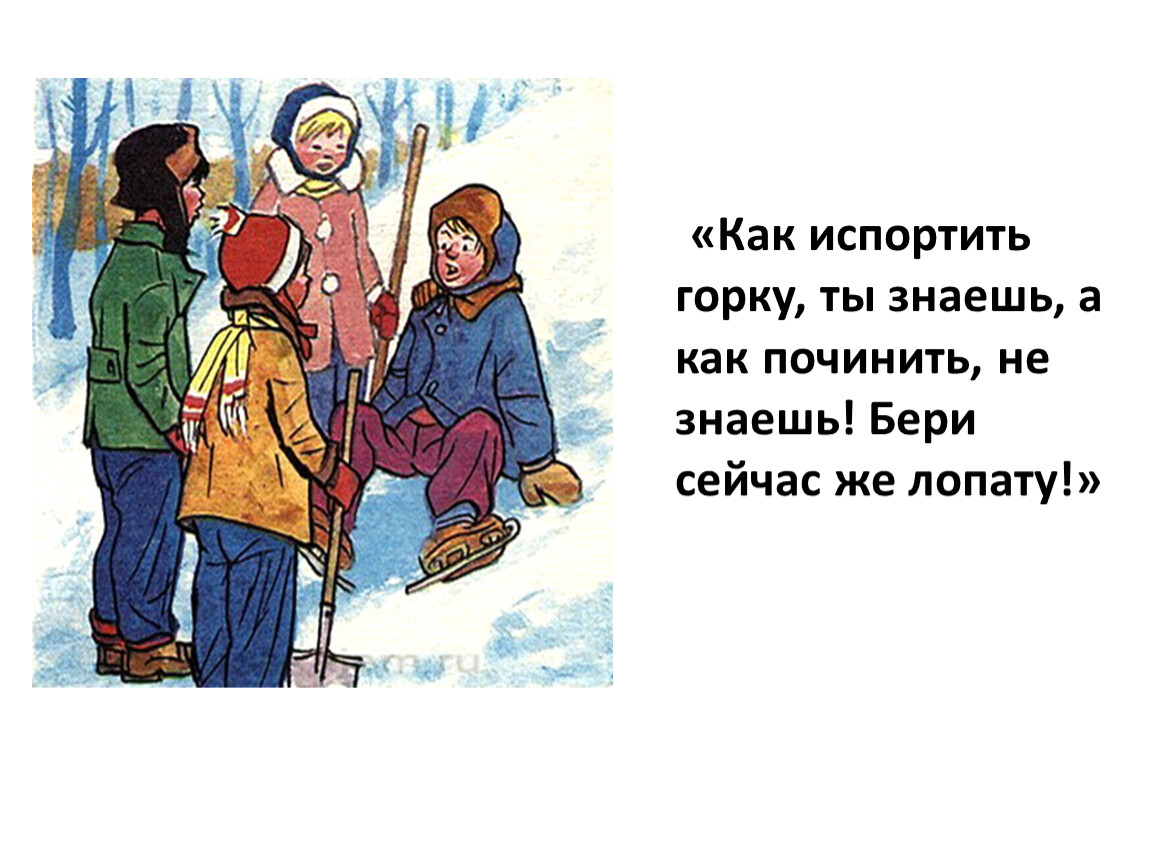 7. «Как испортить горку, ты знаешь, а как починить, не знаешь! Бери сейчас же лопату!»