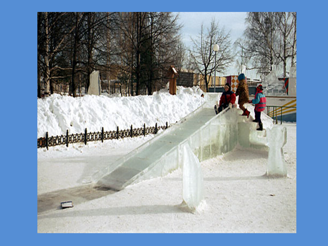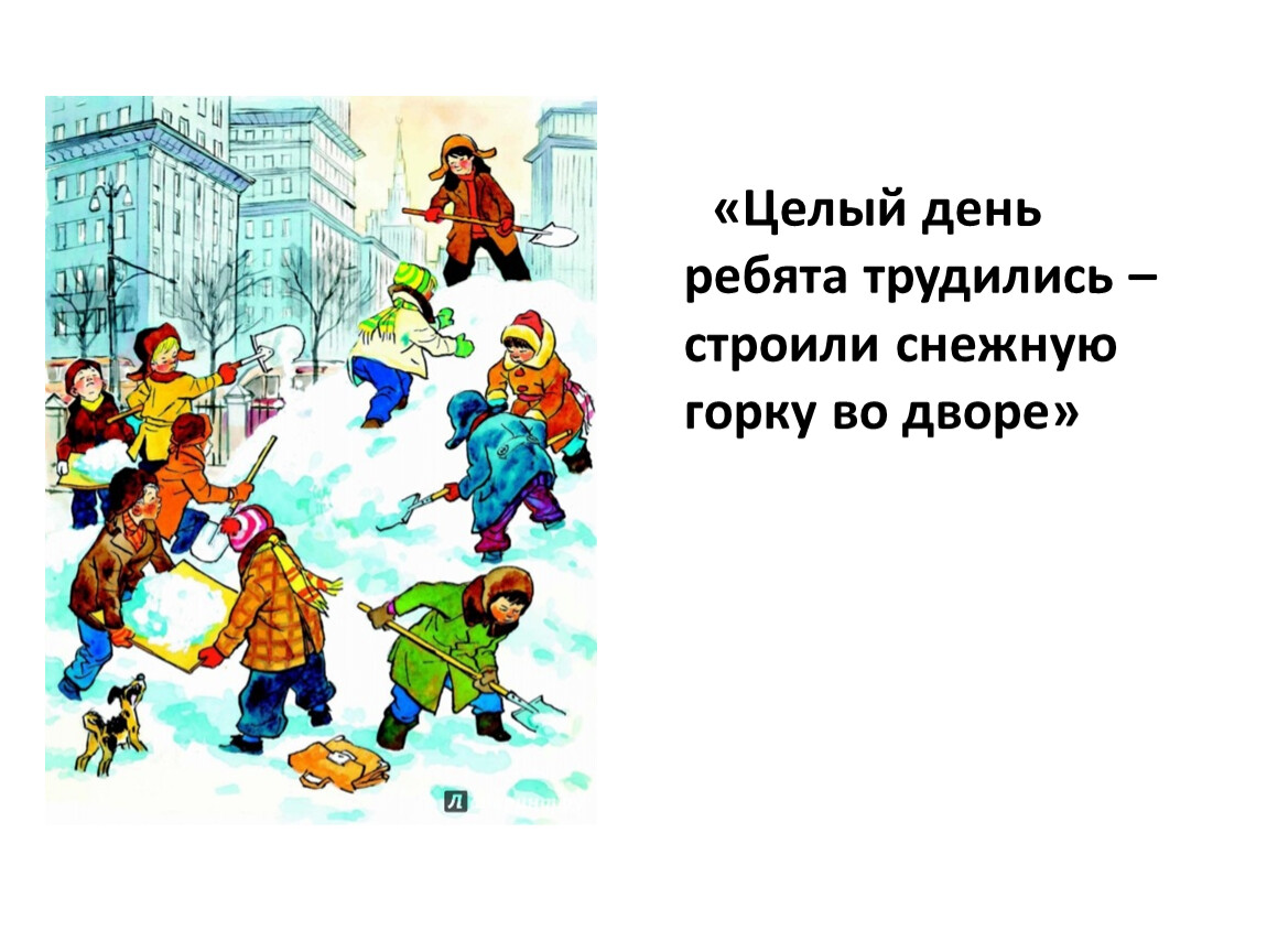 1. «Целый день ребята трудились – строили снежную горку во дворе»