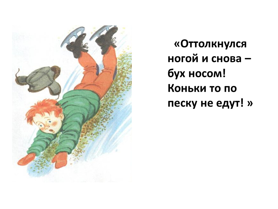 6. «Оттолкнулся ногой и снова – бух носом! Коньки то по песку не едут!»