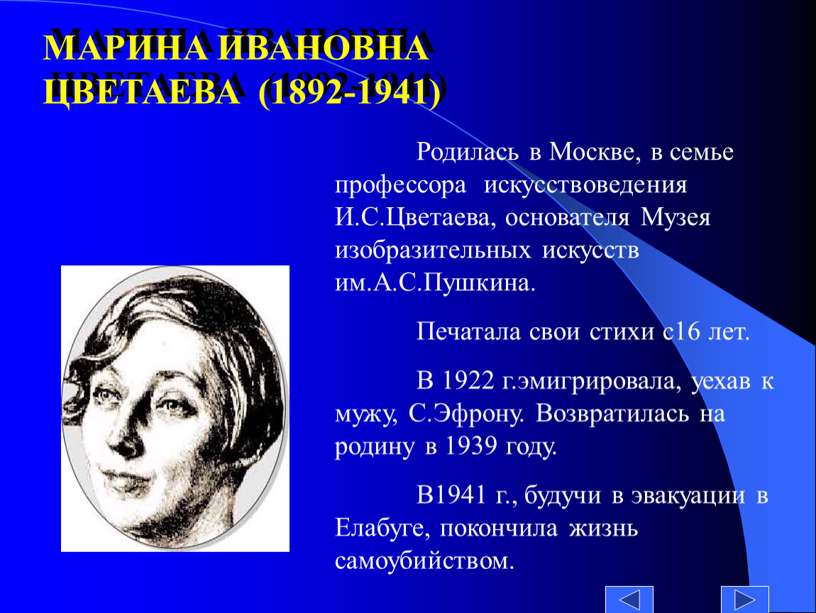 МАРИНА ИВАНОВНА ЦВЕТАЕВА (1892-1941)