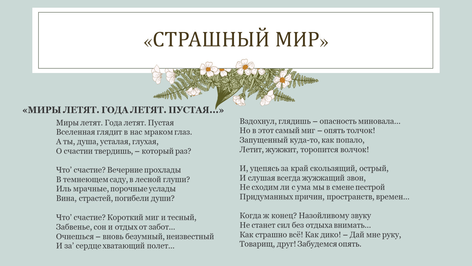 «МИРЫ ЛЕТЯТ. ГОДА ЛЕТЯТ. ПУСТАЯ...»