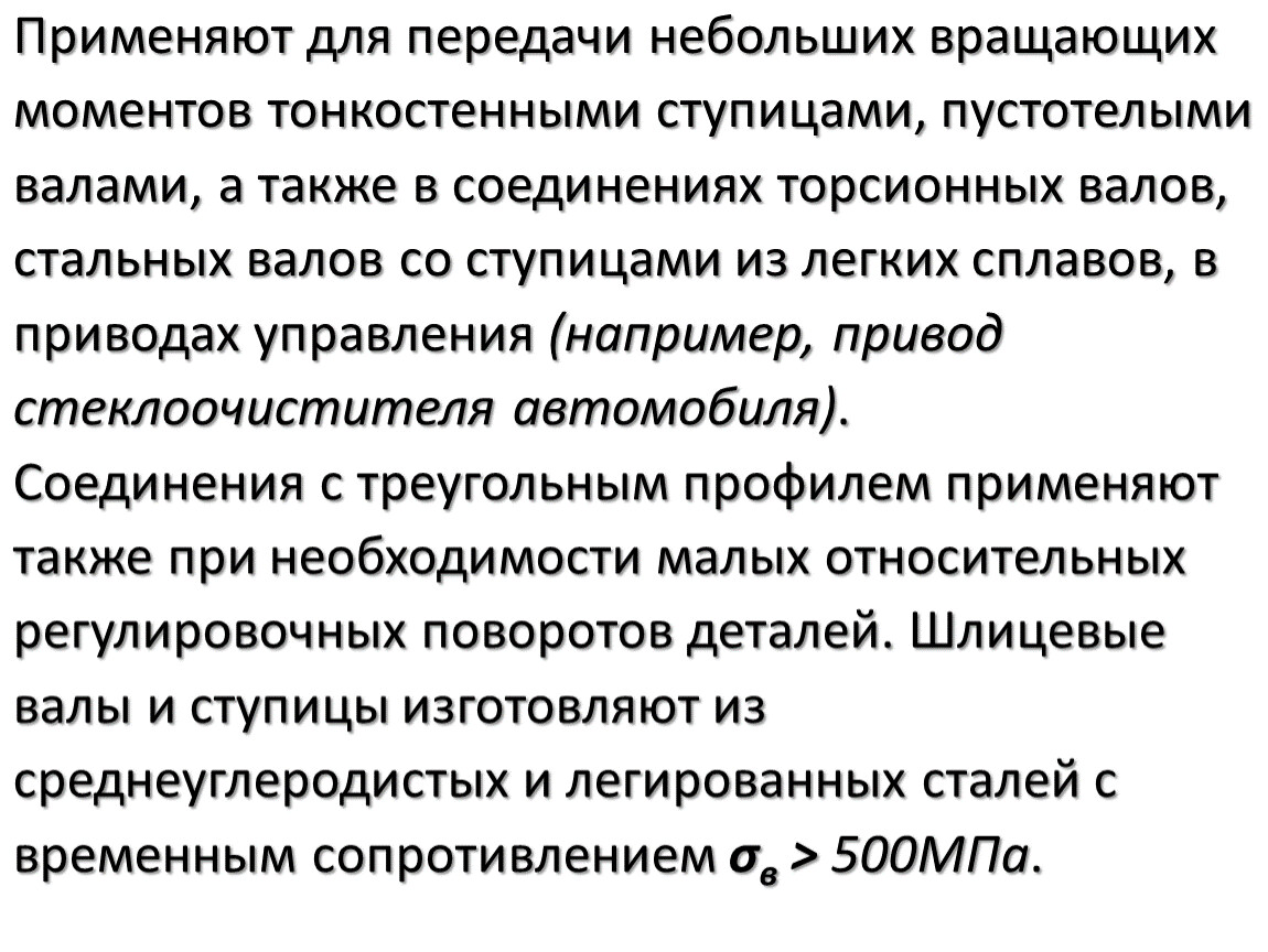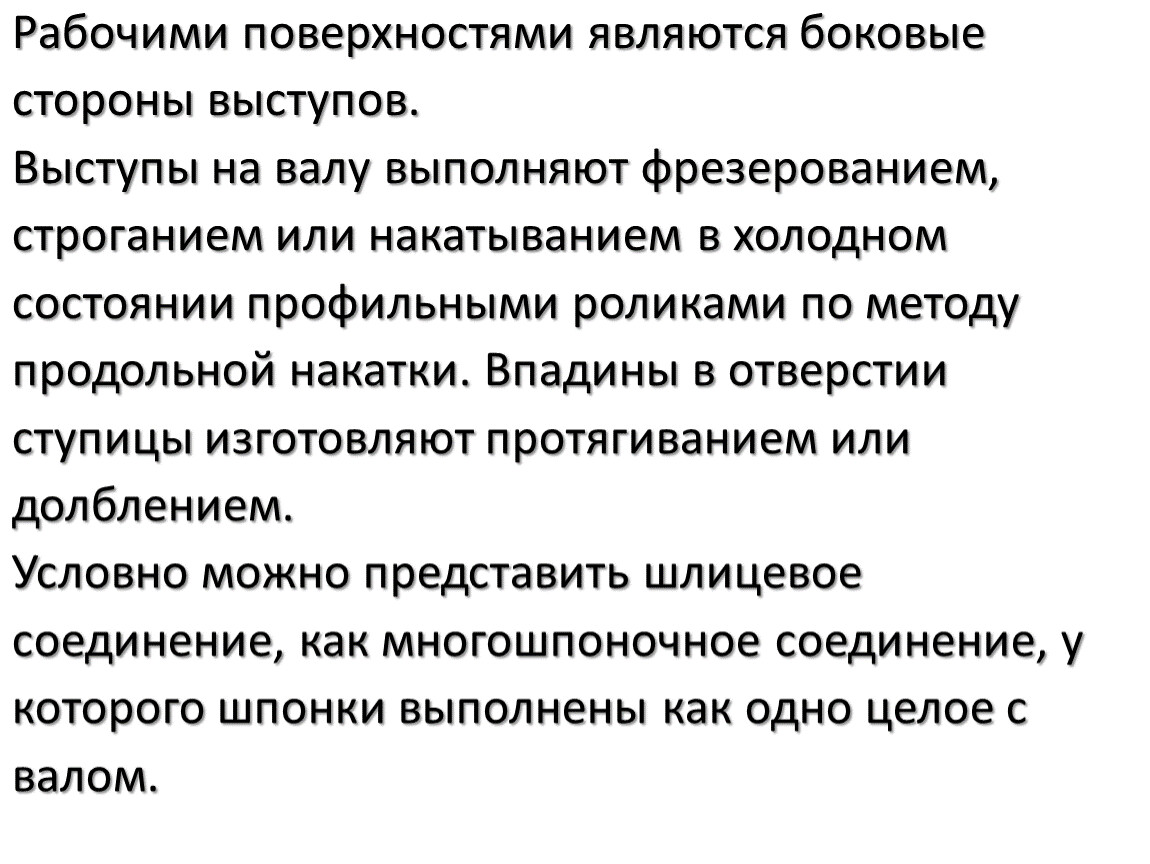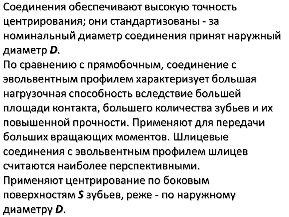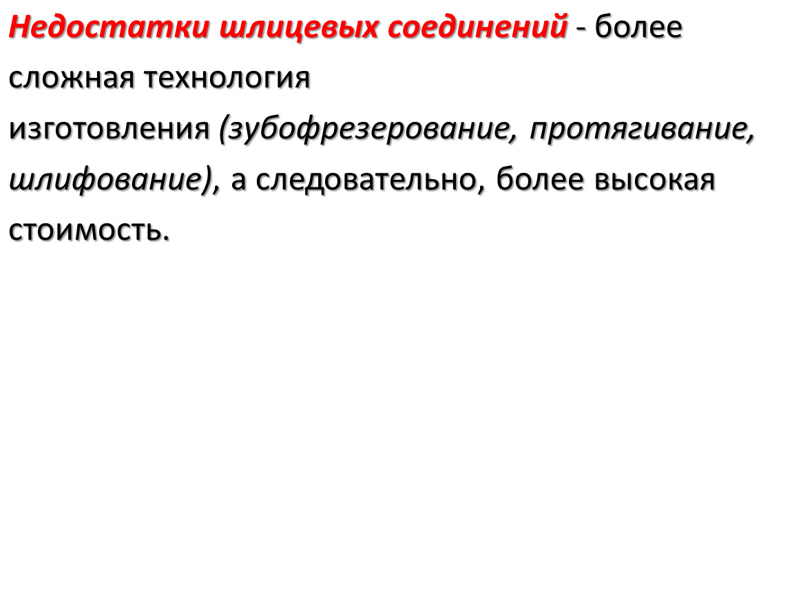 большая усталостная прочность вследствие меньшей концентрации напряжений изгиба, особенно для эвольвентных шлицев.