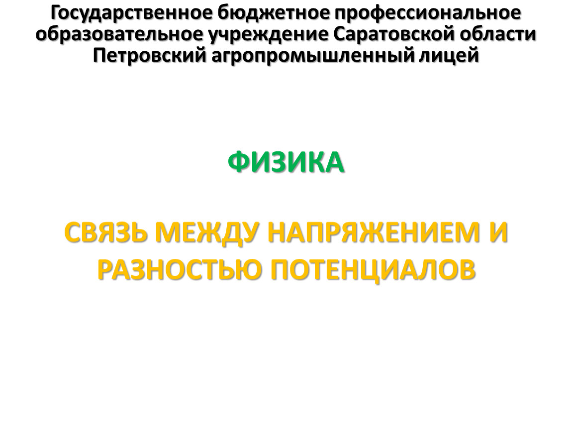 СВЯЗЬ МЕЖДУ НАПРЯЖЕНИЕМ И РАЗНОСТЬЮ ПОТЕНЦИАЛОВ