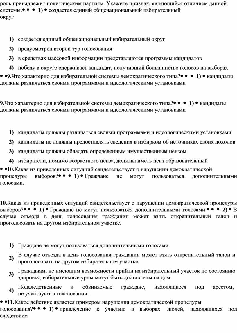 9.Что характерно для избирательной системы демократического типа? |