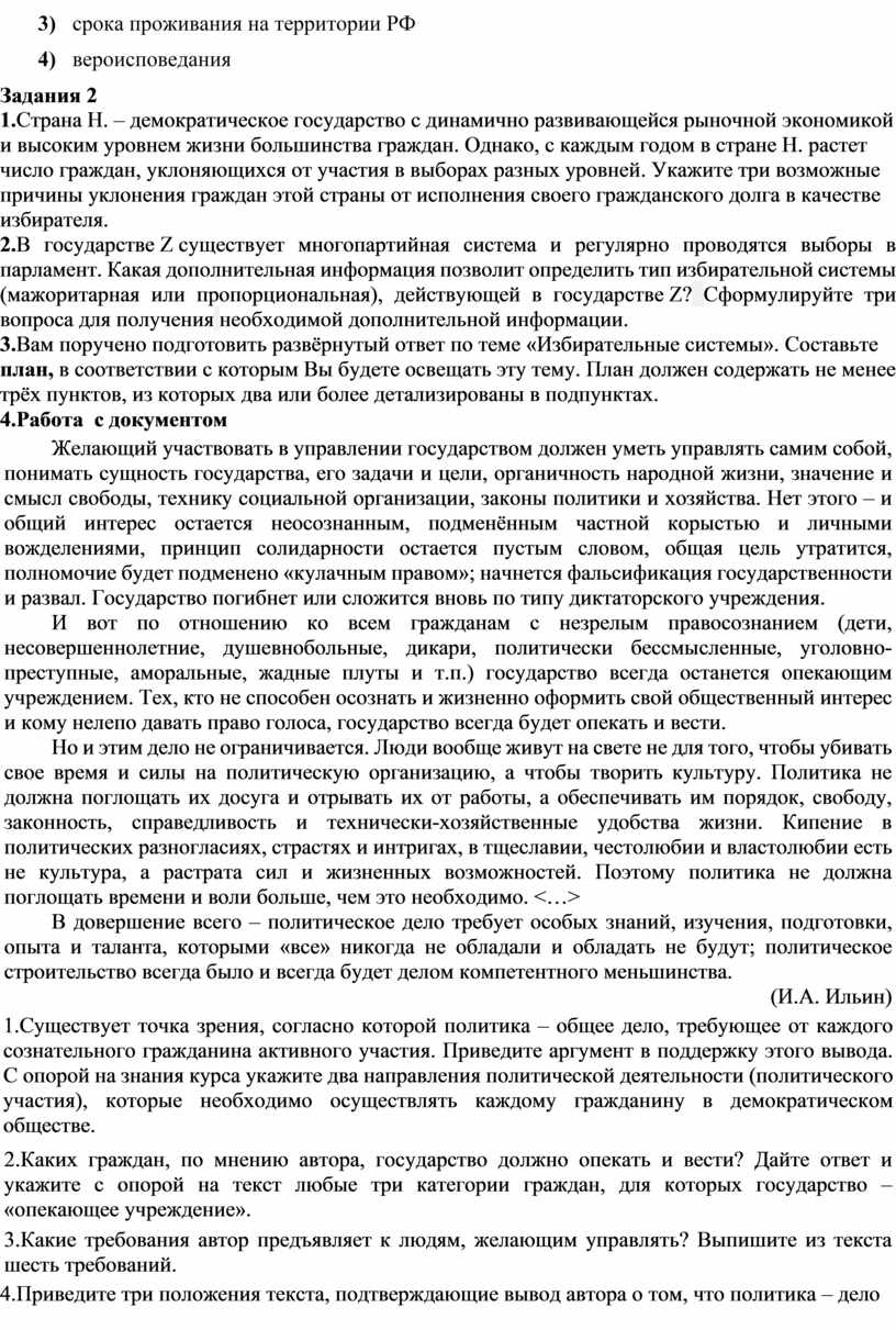 3.Вам поручено подготовить развёрнутый ответ по теме «Избирательные системы». Составьте план, в соответствии с которым Вы будете освещать эту тему. План должен содержать не менее трёх пунктов, из которых два или более детализированы в подпунктах.