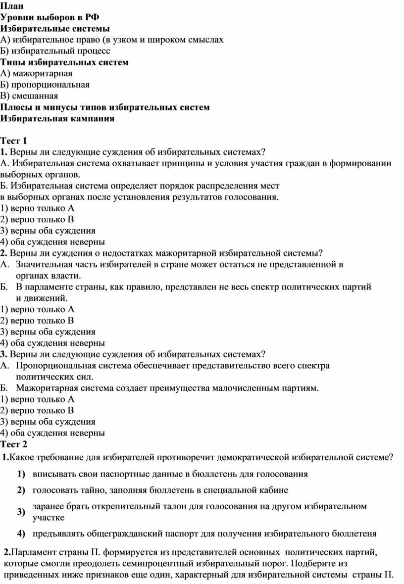 1. Верны ли следующие суждения об избирательных системах?