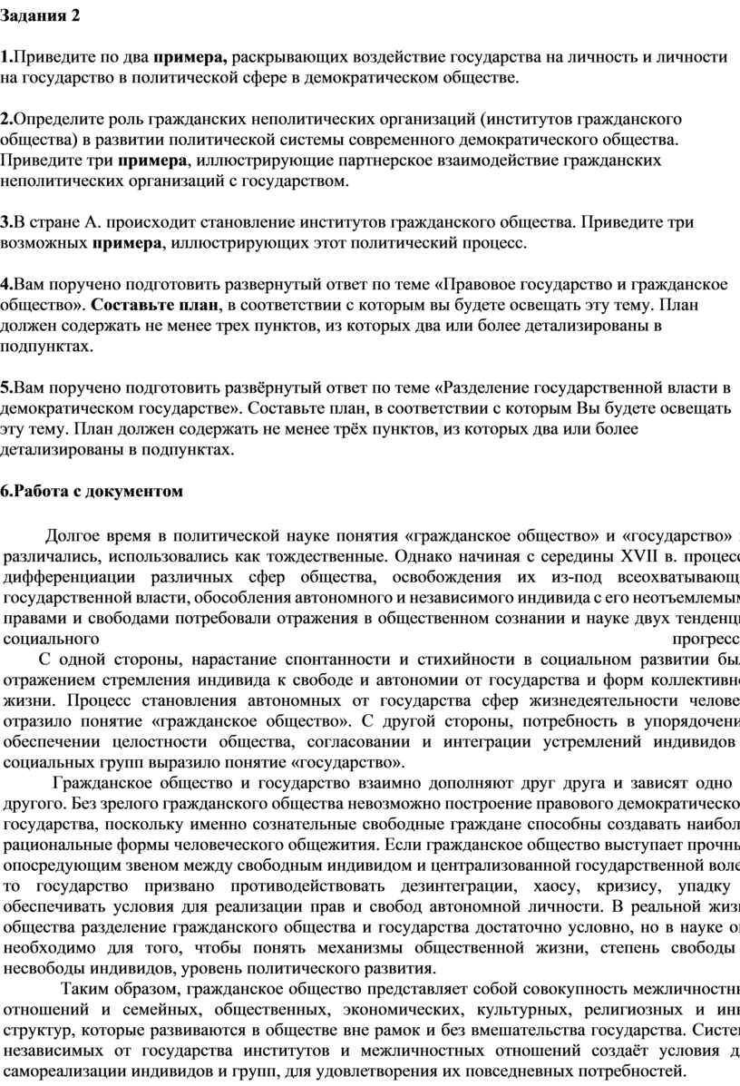 2.Определите роль гражданских неполитических организаций (институтов гражданского общества) в развитии политической системы современного демократического общества. Приведите три примера, иллюстрирующие партнерское взаимодействие гражданских неполитических организаций с государством.