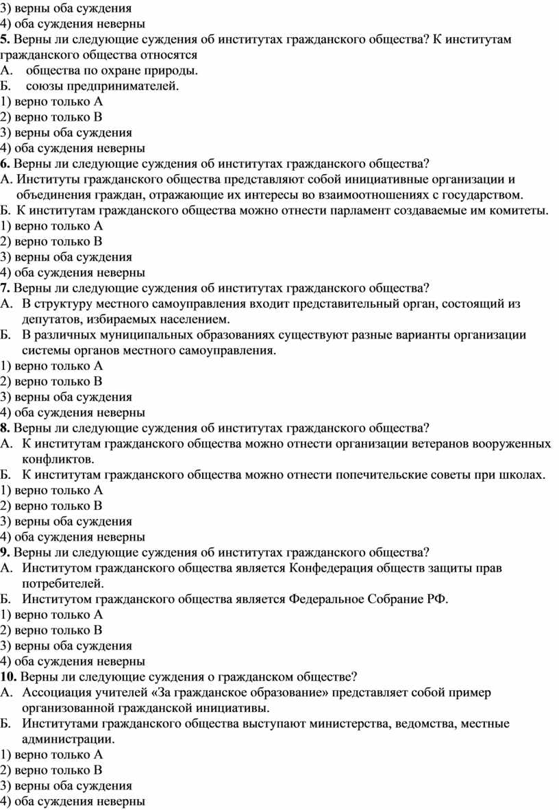 6. Верны ли следующие суждения об институтах гражданского общества?