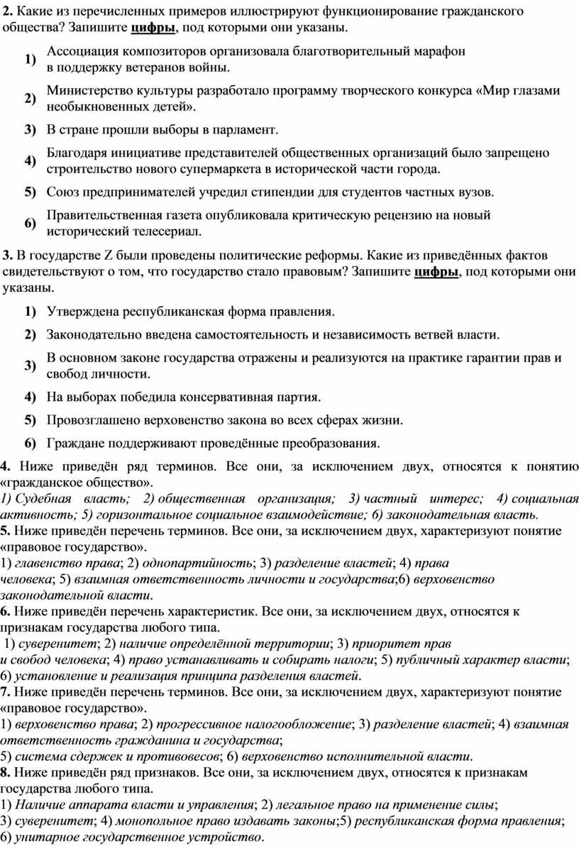 2. 2. Какие из перечисленных примеров иллюстрируют функционирование гражданского общества? Запишите цифры, под которыми они указаны. |