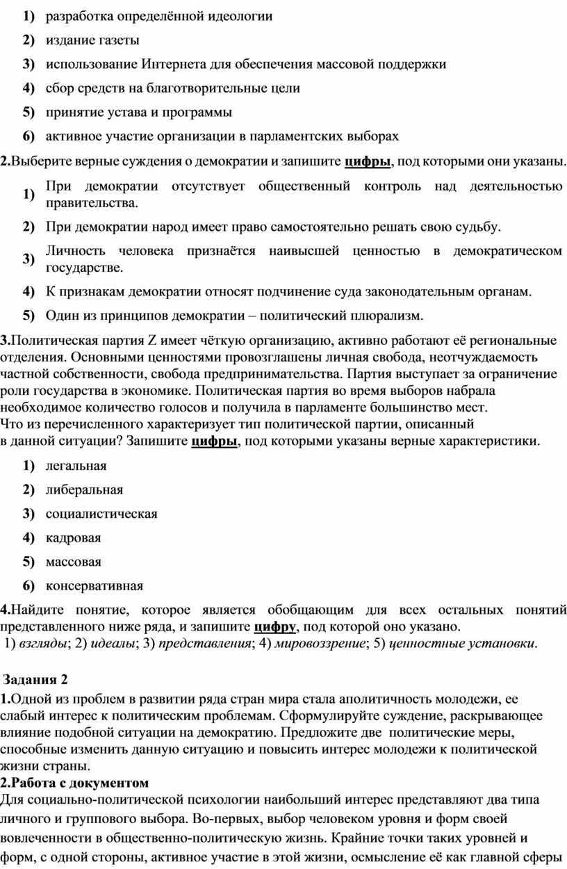Задания 1 1.В государстве Z появилась новая политическая организация. Какие из приведённых фактов служат доказательствами того, что она является политической партией? Запишите цифры, под которыми они указаны. |