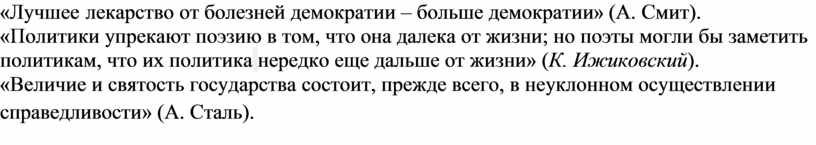 «Лучшее лекарство от болезней демократии – больше демократии» (А. Смит).