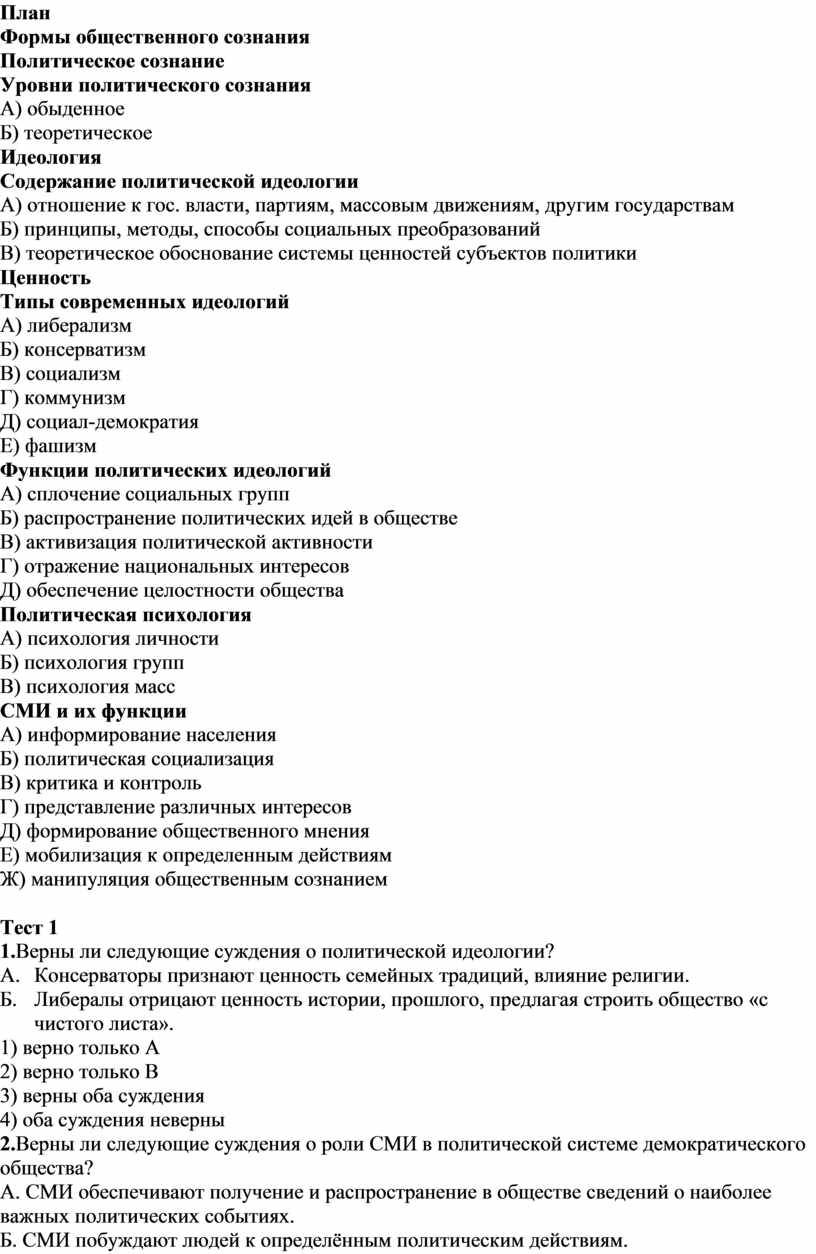 1.В зависимости от идеологии учёные-политологи выделяют |