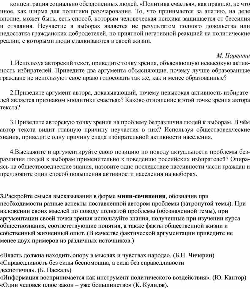 3.Раскройте смысл высказывания в форме мини-сочинения, обозначив при необходимости разные аспекты поставленной автором проблемы (затронутой темы). При изложении своих мыслей по поводу поднятой проблемы (обозначенной темы), при аргументации своей точки зрения используйте знания, полученные при изучении курса обществознания, соответствующие понятия, а также факты общественной жизни и собственный жизненный опыт. (В качестве фактической аргументации приведите не менее двух примеров из различных источников.)