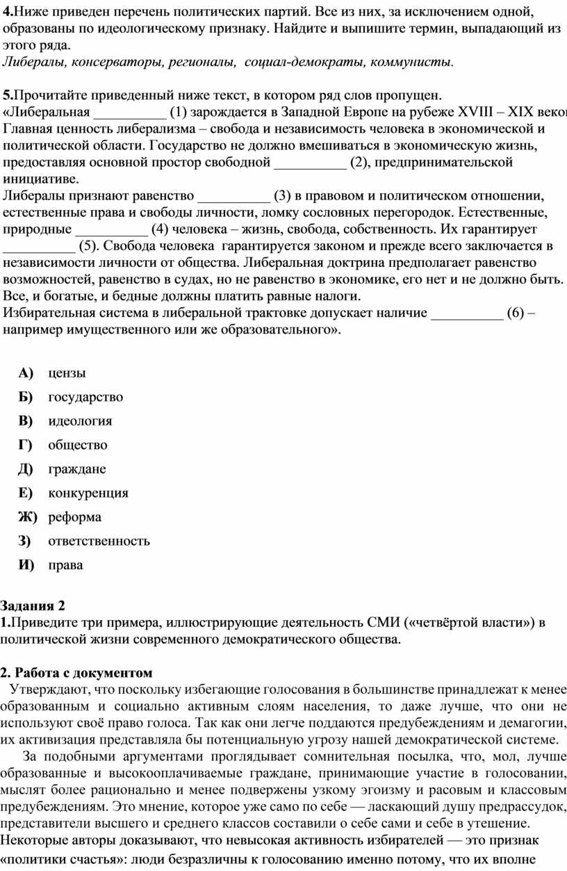 1.Приведите три примера, иллюстрирующие деятельность СМИ («четвёртой власти») в политической жизни современного демократического общества.