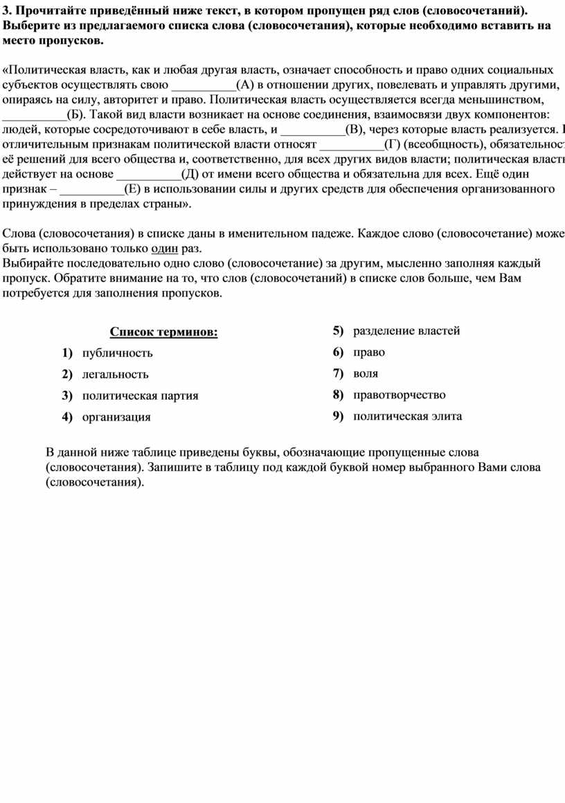 3. Прочитайте приведённый ниже текст, в котором пропущен ряд слов (словосочетаний). Выберите из предлагаемого списка слова (словосочетания), которые необходимо вставить на место пропусков.
