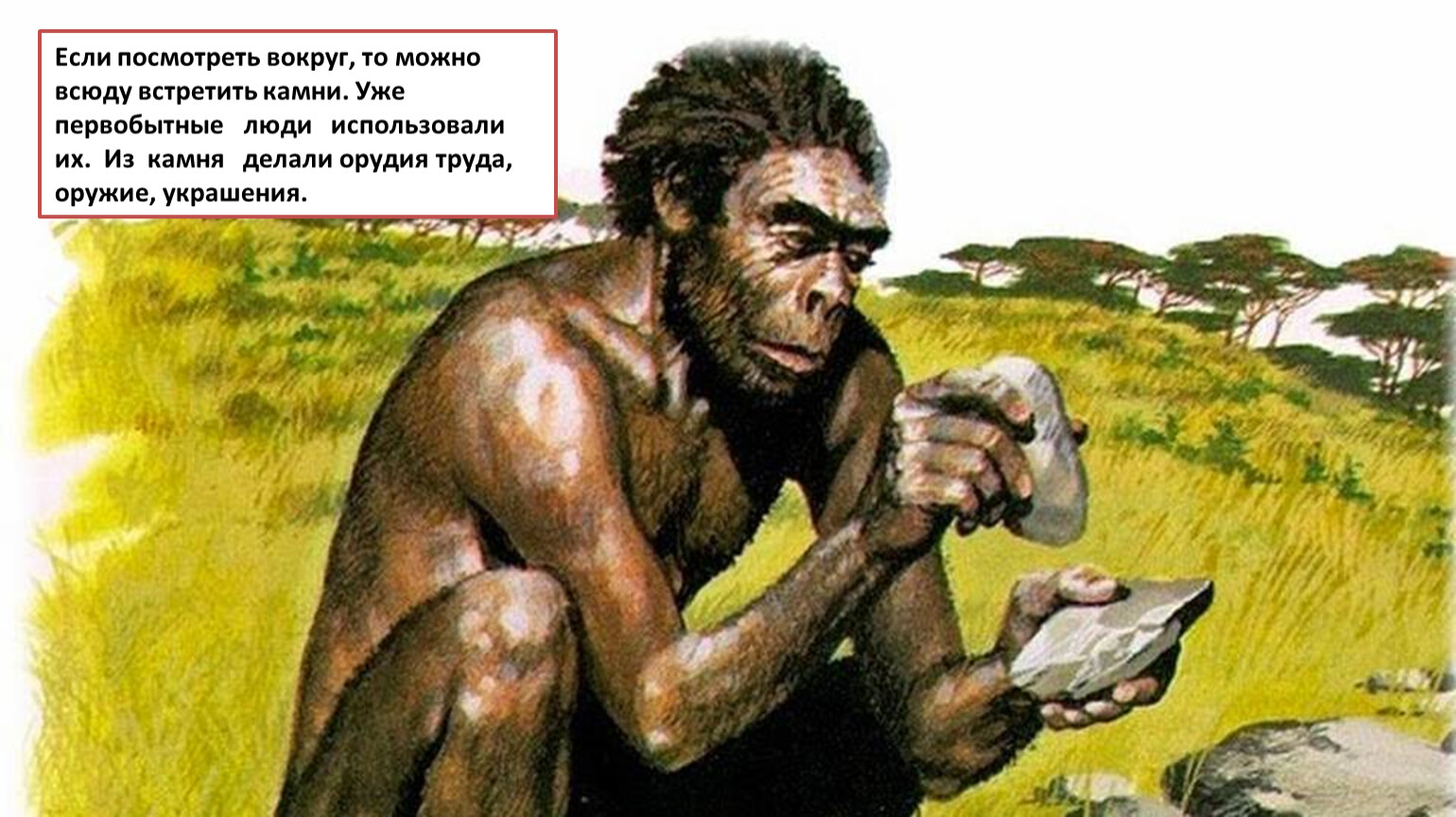 Если посмотреть вокруг, то можно всюду встретить камни. Уже первобытные люди использовали их. Из камня делали орудия труда, оружие, украшения.