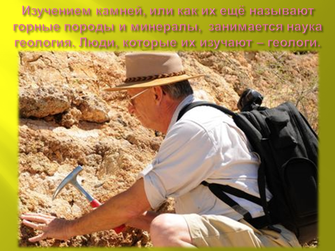 Изучением камней, или как их ещё называют горные породы и минералы, занимается наука геология. Люди, которые их изучают – геологи.