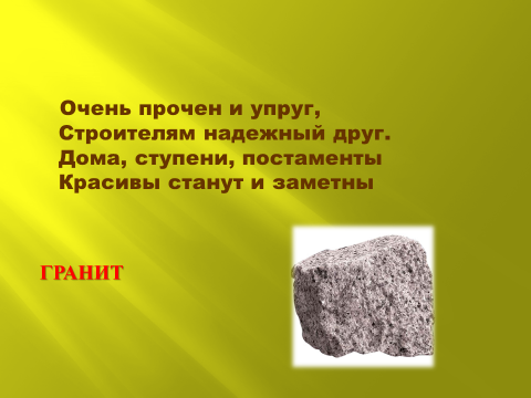 Очень прочен и упруг,Строителям надежный друг. Дома, ступени, постаменты Красивы станут и заметны