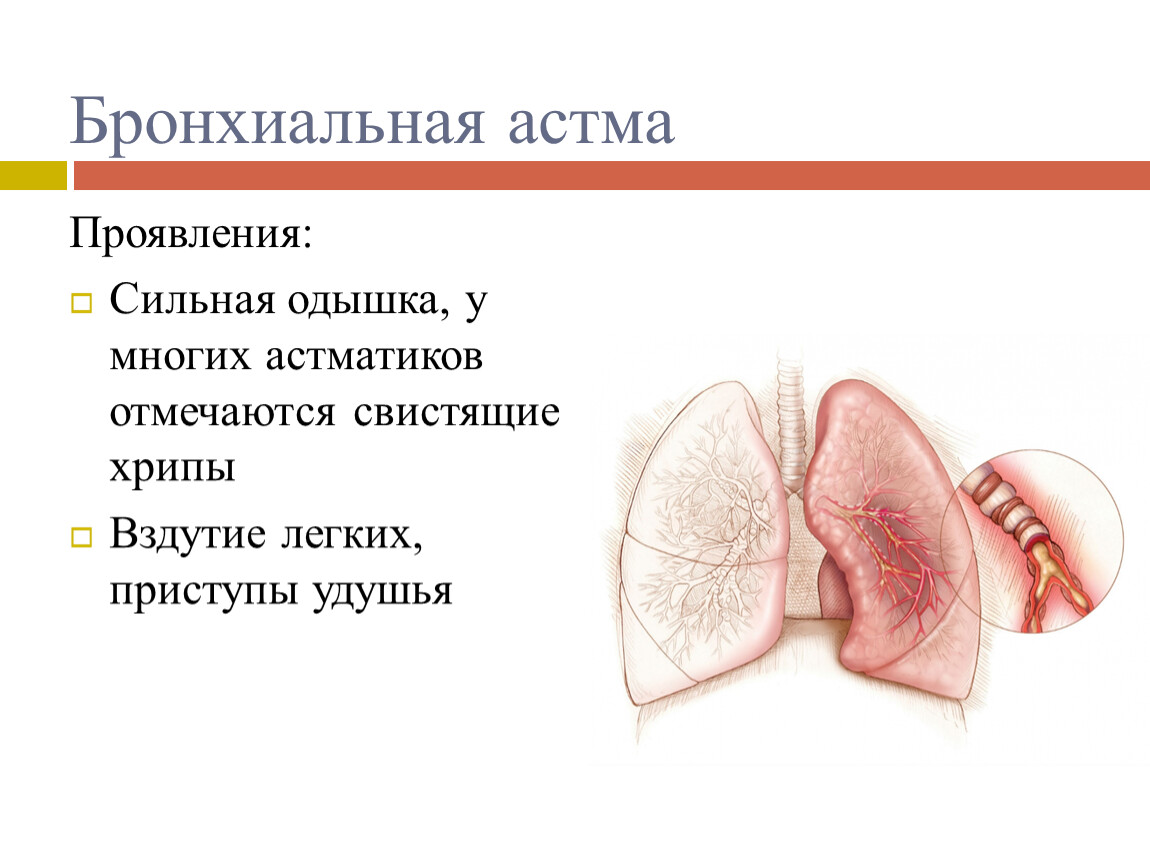 Сильная одышка, у многих астматиков отмечаются свистящие хрипы