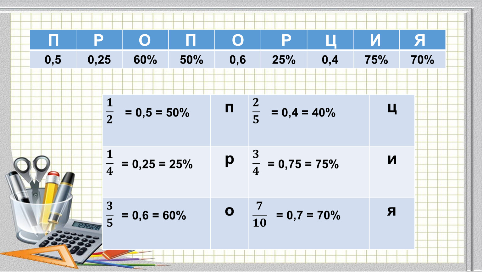 Пропорция – определенное соотношение частей между собой, соразмерность.
