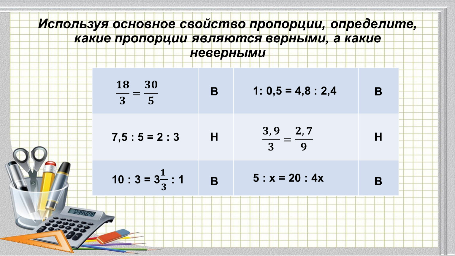 Используя основное свойство пропорции, определите, какие пропорции являются верными, а какие неверными