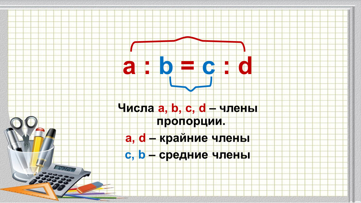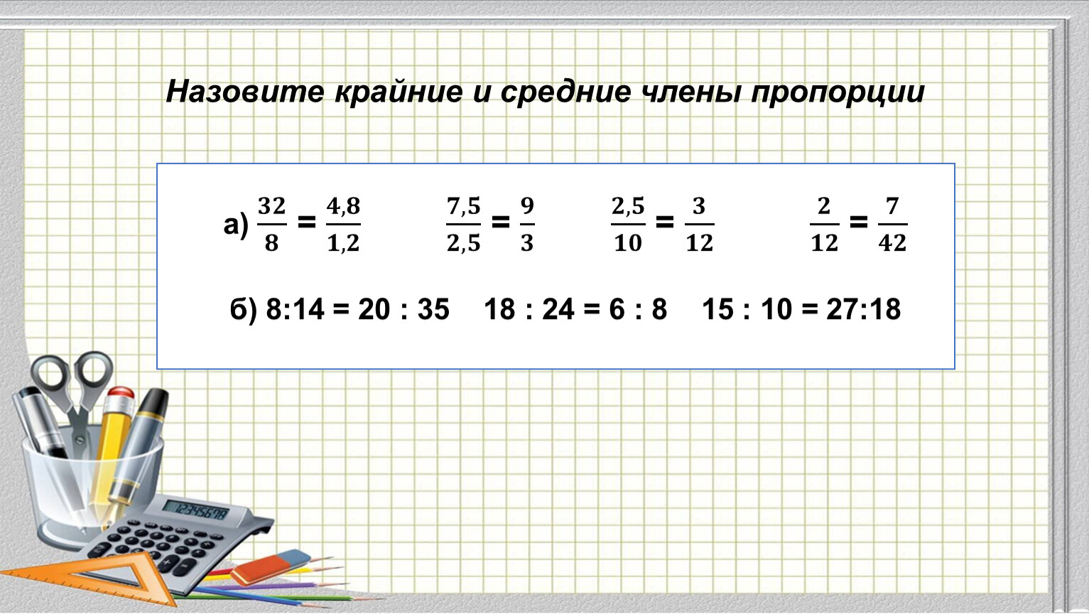 Назовите крайние и средние члены пропорции
