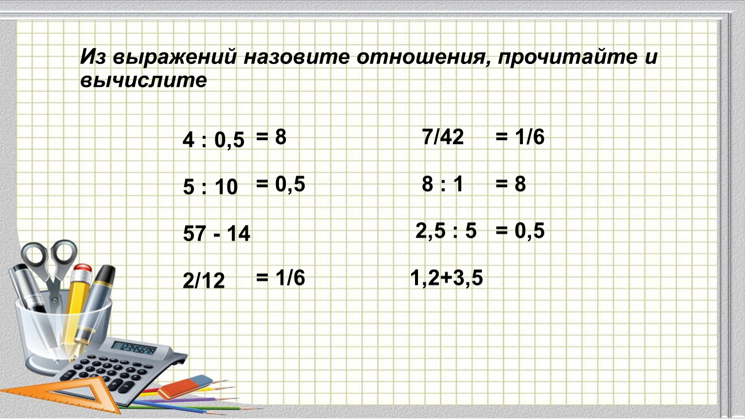 Из выражений назовите отношения, прочитайте и вычислите
