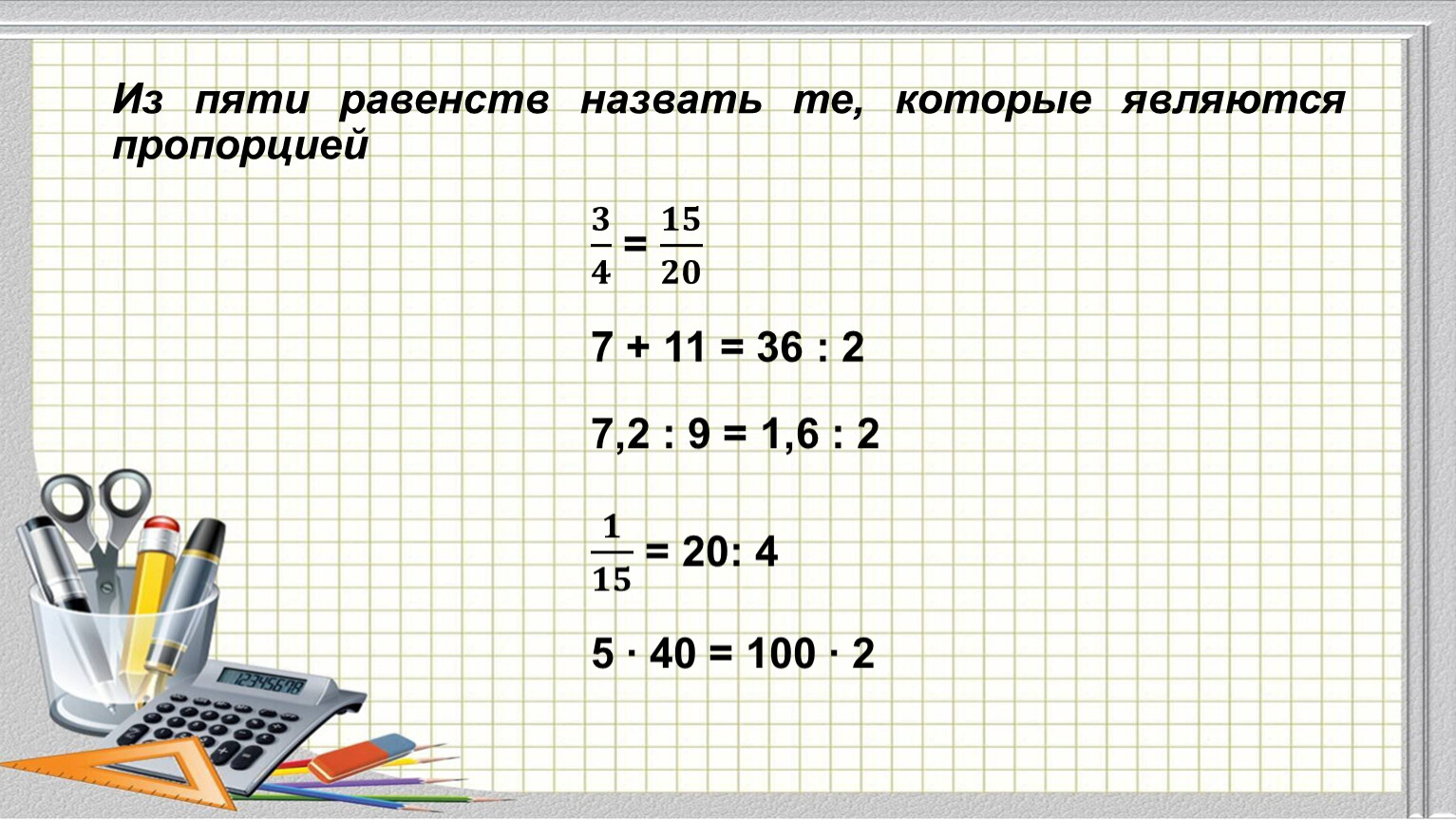 Из пяти равенств назвать те, которые являются пропорцией