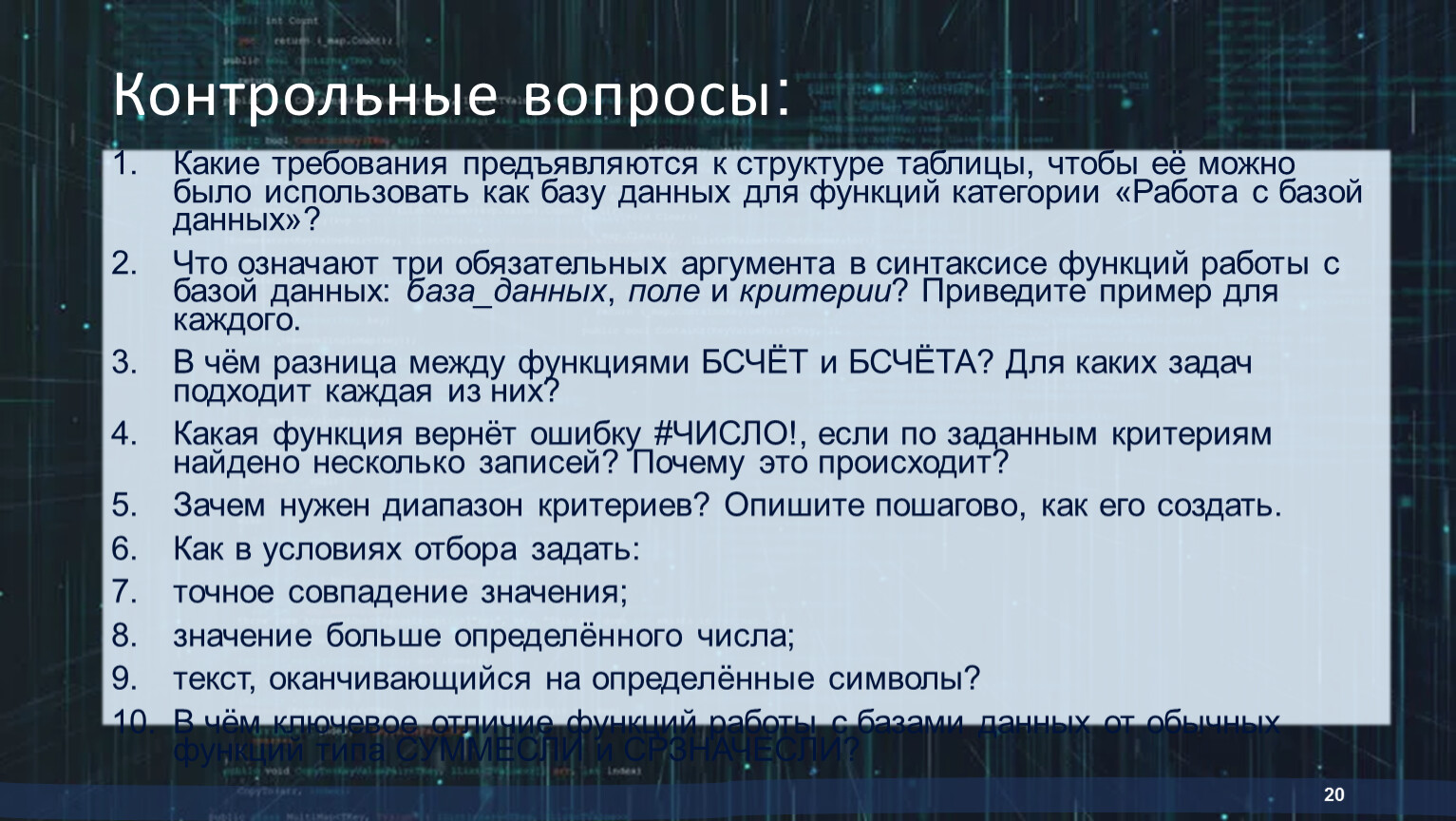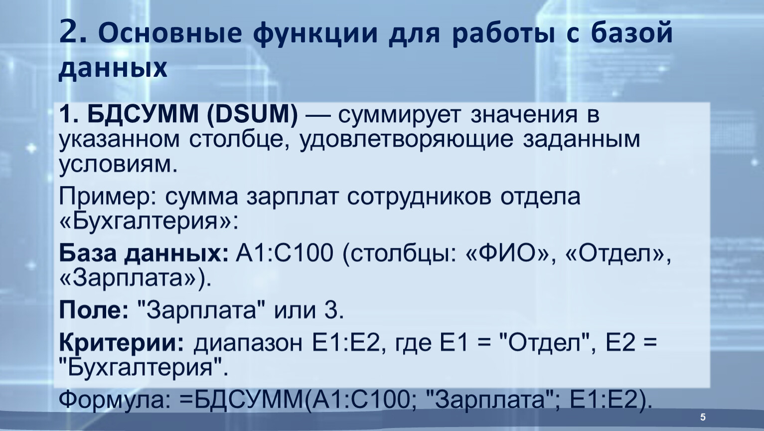 В лекции разберём функции категории «Работа с базой данных», их синтаксис, особенности и примеры применения.