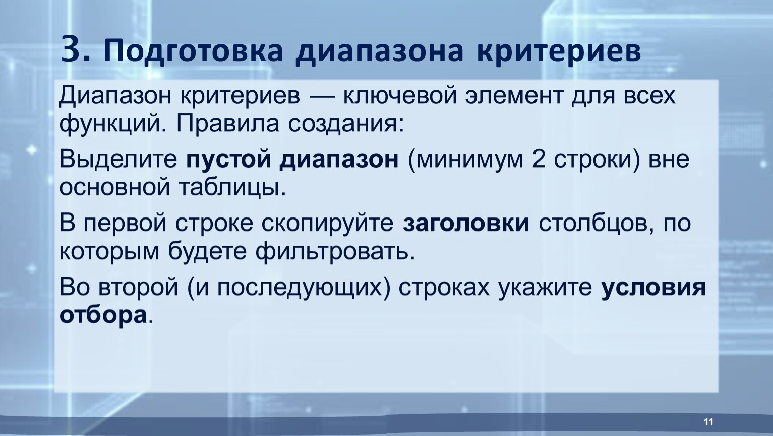 Диапазон критериев — ключевой элемент для всех функций. Правила создания: