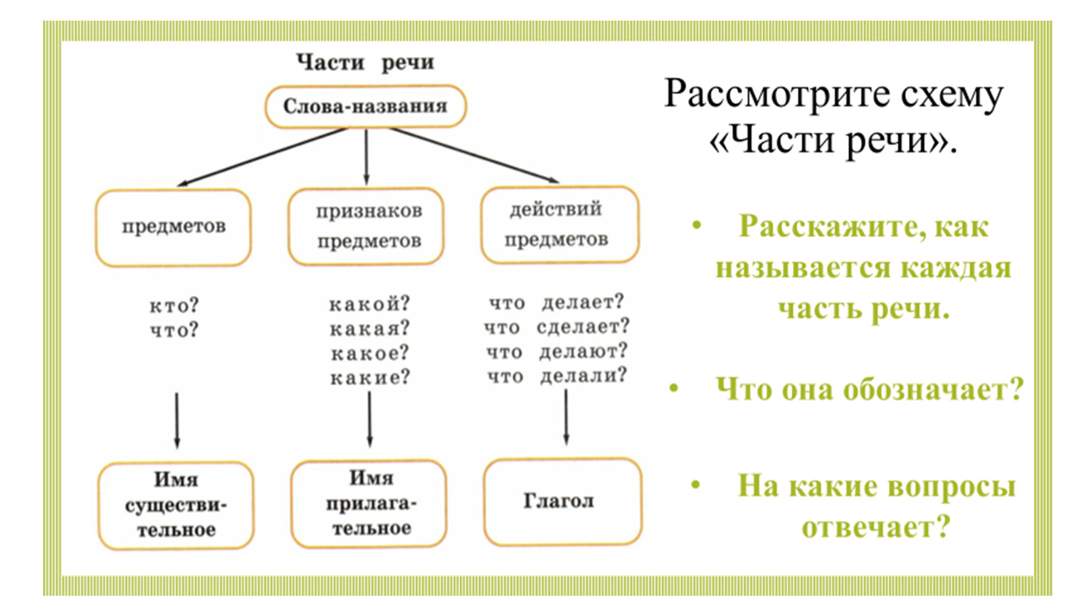 Презентация к уроку русского языка 3 класс "Части речи"