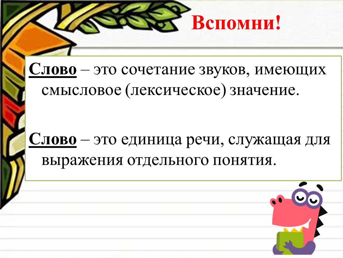 Слово – это сочетание звуков, имеющих смысловое (лексическое) значение.